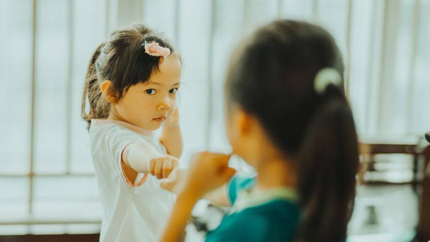 親が楽しそうにパンチやキックをしている姿は、子どもにとって良いお手本。